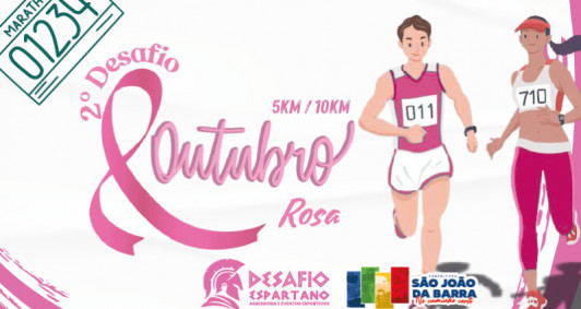 Adeptos da corrida de rua estarão reunidos em São João da Barra neste sábado (4), no 2º Desafio Outubro Rosa, que será disputado nos circuitos de 5 km e 10 km na Avenida Genecy Mendonça, na chegada da cidade, com largada às 8h. Inscrições para o evento devem ser feitas diretamente com a organização, pelo telefone (22) 998639789.