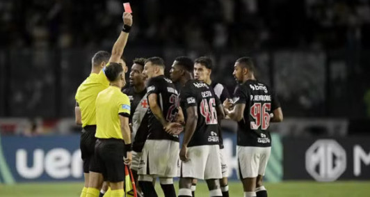 A arbitragem comandada pelo uruguaio Hernan Heras foi confusa e resultou em polêmica em São Januário. A começar pela expulsão de JP no primeiro tempo. O volante recebeu o segundo cartão amarelo aos 34 minutos num lance em que quem sofreu um pisão foi ele. Nesse caso, o VAR não foi chamado porque não pode interferir em jogadas de segundo amarelo. Já no segundo gol do Audax, a arbitragem inicialmente marcou impedimento de Troyansky. Em seguida, o VAR sugeriu a revisão porque Cuesta envolveu o atacante com os braços na área. O árbitro viu e reviu o lance na tela e, por fim, decidiu marcar o pênalti para o Audax. E ainda aplicou o cartão vermelho direto para Cuesta.