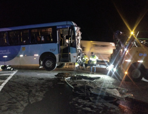 Uma colisão entre um ônibus e uma carreta na BR 101, próximo ao Shopping Estrada, em Campos, deixou 35 pessoas feridas, no início da noite desta quinta-feira (20). O motorista do coletivo chegou a ficar preso nas ferragens. O ônibus, da empresa Rogil, saiu da rodoviária Roberto Silveira, no Centro, às 17h40, com destino a Caxeta. Na hora do acidente, havia cerca de 50 passageiros no veículo.