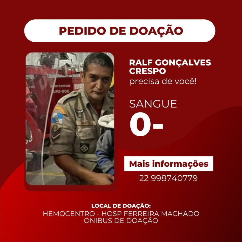 Em nota, o Corpo de Bombeiros Militar do Estado do Rio de Janeiro repudiou o ataque sofrido pelo 1° sargento Ralf Gonçalves Crespo, durante serviço, no Centro de Manutenção Regional do CBMERJ, nesta madrugada. “Segundo informações preliminares, o militar foi atacado a tiros por um homem que invadiu a unidade. O militar foi baleado e passa por cirurgia no Hospital Ferreira Machado, em Campos. Assistentes sociais da corporação atuam em apoio à família do bombeiro. A Polícia Civil (134ª DP) investiga o caso”, diz a nota.