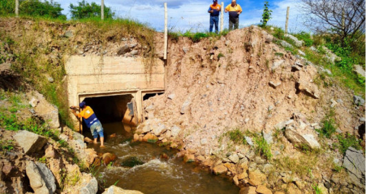 Três Vendas - Equipes da Defesa Civil realizaram a medição da “boca” da galeria celular construída no local pelo governo federal e a secretaria está adquirindo material, como chapas de aço e pedras, para uma contenção de emergência, caso o Muriaé transborde. A medida preventiva é para evitar que as águas passem pela galeria e alaguem Três Vendas.