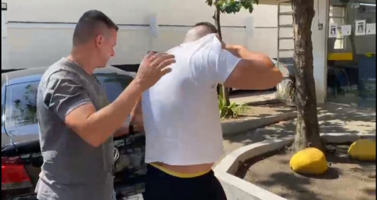 Veja o momento da chegada do suspeito à delegacia: