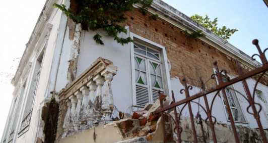 O prédio da extinta Emut, por exemplo, por algum tempo ainda estava demarcado pela Defesa Civil Municipal, alertando. No momento, não há nenhuma indicação do perigo de passar pela calçada. No entanto, paredes estufadas e o reboco caindo são visíveis pelo menos para colocar medo em quem passa, o que parece não ser o caso.