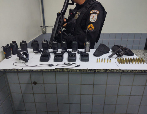 De acordo com a PM, uma denúncia levou os militares até o local, que ao chegarem no ponto indicado da comunidade, em uma entrada estratégica, conseguiram encontrar um revólver cal.32, seis munições do mesmo calibre, outra 30 de cal.9mm, dois coldres de saque rápido, uma mira a laser, os nove rádios de comunicação, quatro bases e um fone de ouvido para o equipamento.