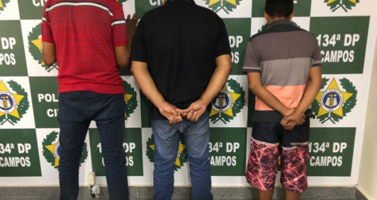 Agentes da 134ª Delegacia de Polícia (Centro) e da Polícia Rodoviária Federal prenderam três homens em flagrante, nesta terça-feira (17), por roubo qualificado, restrição da liberdade da vítima e por associação criminosa armada. A prisão ocorreu por volta das 7h, enquanto a quadrilha estava sendo monitorada em um posto de combustível, no km 80 da BR 101, em Ibitioca, distrito de Campos.