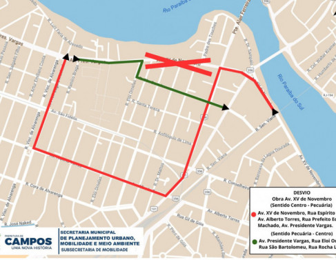“Pela manhã será concluído o asfaltamento do trecho entre a rua Senador Viana e a rua Rocha Leão. Para execução deste serviço, a XV de Novembro, no sentido Pecuária, será interditada a partir da rua Baronesa da Lagoa Dourada, com acesso à avenida Alberto Torres. Na parte da tarde, terá início o recapeamento asfáltico a partir da rua Espírito Santo até a Rua Elói Ornelas (MAPA), serviço este que poderá se prolongar por três ou três dias. O desvio do trânsito no sentido Pecuária será pela rua Espírito Santo, avenida Alberto Torres, rua Prefeito Edgard Machado e avenida Presidente Vargas (VERMELHO). No sentido Centro, o desvio é sair da avenida Presidente Vargas, acessar a rua Elói Ornelas, seguir pela Rua São Bartolomeu e chegar até a rua Rocha Leão (VERDE)”, pontuou o subsecretário.