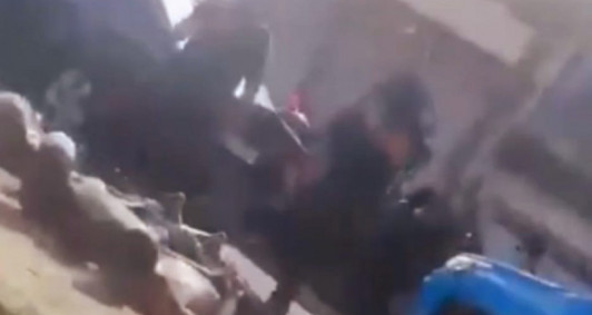 Após a viatura da PM abalroar no carro com os suspeitos, houve a interceptação com todos os nove suspeitos sendo colocados deitados no chão com as mãos para atrás.
