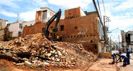 Máquinas voltam a demolir estrutura do Hotel Flávio para evitar riscos
