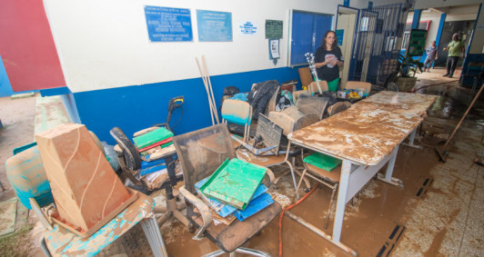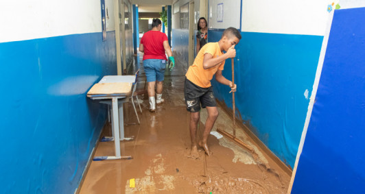 Quando a natureza abrandou, reforços começaram a chegar de todos os lugares. Eram pais, mães, professores e alunos que se juntaram à direção da escola, munidos não apenas de rodos, baldes e panos, mas também de uma fé inabalável na escola e na educação como pilar daquela comunidade, sendo por vezes o único local de lazer e de ensino na minúscula região, como explicou, emocionada, a diretora Lidete Oliveira (60 anos).
