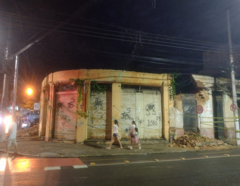 Parte de prédio antigo na Formosa desaba após fortes chuvas