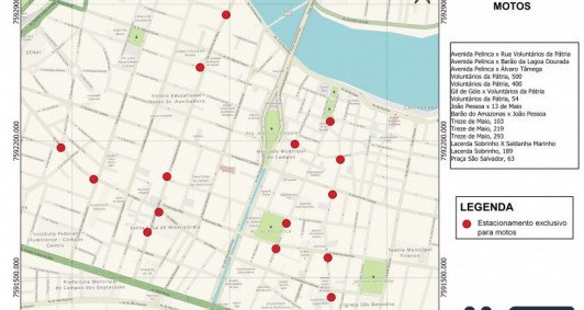 O IMTT também determinou a criação de 10 vagas exclusivas para motos na Rua Barão do Amazonas, próximo à Rua João Pessoa, e outras 20 em dois pontos da Rua Doutor Lacerda Sobrinho. Na Praça do Santíssimo Salvador também serão criadas 10 vagas.