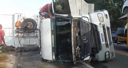 Carreta tomba na BR-101, na altura de Ibitioca, em Campos