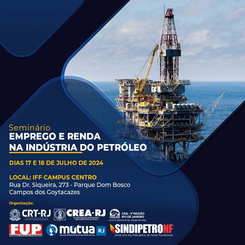 Nos dias 17 e 18 de julho, o Instituto Federal Fluminense (IFF) em Campos dos Goytacazes sediará o Seminário de Emprego e Renda na Indústria do Petróleo. O evento, que acontecerá no Auditório do IFF, promete reunir especialistas, profissionais e interessados no setor petrolífero para discutir as perspectivas e desafios do mercado de trabalho na região Norte Fluminense.