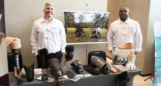 Representantes de empresa centenária de próteses alemã, criada na primeira Guerra Mundial com intuito de fabricar próteses à sobreviventes, Ottobock, também estiveram presentes. Alex Santos e Rafael Corrêa vieram na representação da Ottobock. Segundo Alex, a empresa está sempre desenvolvendo órtese e prótese, para reabilitação do paciente, tanto amputado como com algum tipo de lesão. E as novidades do mercado são as tecnologias de encaixe e órtese biônica e prótese biônica.