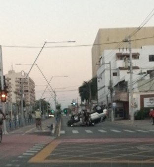 Um capotamento foi registrado na avenida 28 de Março, próximo de um shopping, em Campos, no início da manhã desta sexta-feira (23). De acordo com testemunhas, o motorista perdeu o controle da direção do veículo e capotou.