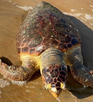 Da espécie Caretta caretta, de aproximadamente 150kg, o animal foi recolhida pelo Programa de Monitoramento de Tartarugas Marinhas que atende diretrizes técnicas do Instituto Chico Mendes de Conservação da Biodiversidade (ICMBio) – Tamar e do Instituto Estadual do Ambiente (INEA).