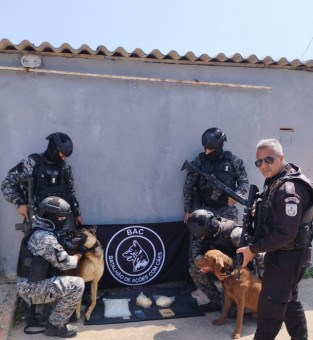 A ação contou com o apoio de dois animais do Batalhão de Ação com Cães (BAC), além de 16 policiais e quatro viaturas.