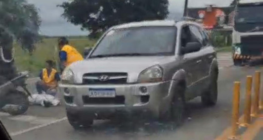 Motociclista e carona ficam feridos após acidente próximo ao Shopping Estrada, em Campos