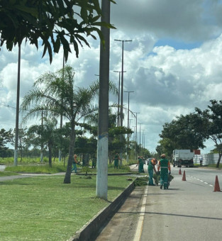 Por conta das contantes chuvas, a vegetação cresce com frequência e na beira das pistas atrapalha o caminho de motoristas, ciclistas e pedestres. O trânsito, que já segue normal, ficou lento enquanto os homens realizavam a ação.