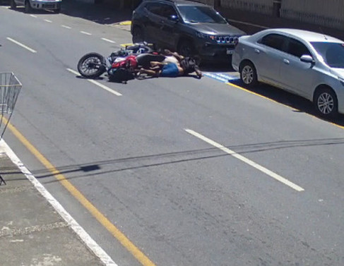 Imagens que circulam nas redes sociais mostram o momento exato em que um motociclista e o garupa caem no chão durante uma perseguição policial na manhã desta quarta-feira (5), no Centro de Campos. Durante a fuga, eles furaram um sinal vermelho e quase colidiram com um carro que passava pelo cruzamento.