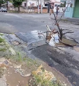 De acordo com o morador da rua, Renato Siqueira, o buraco surgiu em 24 horas e vem jorrando muita água. "Este buraco surgiu ontem e está colocando água para fora, inundando a rua. Um morador até colocou galhos de árvores para poder sinalizar as pessoas que forem passar no local e não acabarem caindo no buraco e se machucando. É grande o risco de acidente para pedestres, ciclistas, motociclistas e motoristas", explicou.