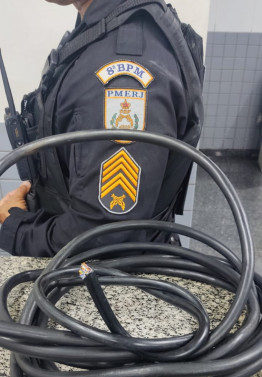 Segundo a Policia Militar, eles foram informados por pessoas que havia um homem puxando e cortando cabos em via pública, ao chegarem ao local, o homem foi abordado e, com ele, encontraram aproximadamente cinco metros de fios, além de uma faca.