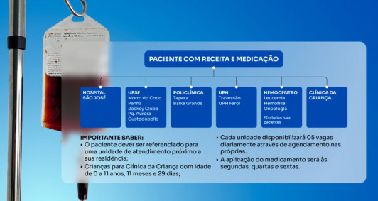 Inicialmente, serão cinco vagas em cada unidade por dia, com aplicação sempre às segundas, quartas e sextas, mas, dependendo da demanda, os dias poderão ser ampliados. A enfermeira da Subsecretaria de Atenção Primária à Saúde, Carla Samira, explica que para ter acesso ao serviço, o paciente deverá se dirigir à unidade mais próxima com a prescrição médica, o medicamento e documentos pessoais.
