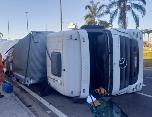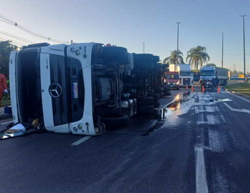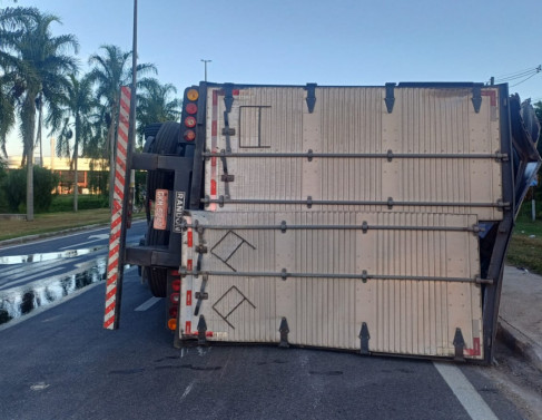 Na saída do feriadão de Corpus Christi, uma carreta tombou na BR 101 na manhã desta quinta-feira (19), por volta de 6h, no antigo "Trevo do Índio", próximo ao Shopping Estrada, em Campos. O caminhão, com carga de cosméticos, vinha de São Paulo e seguia para o Espírito Santo. O motorista do veículo não sofreu ferimentos graves, sendo atendido pela equipe médica no local. De acordo com a Arteris Fluminense, concessionária que administra a via, por conta do acidente, um congestionamento de 10 km chegou a se formou ao longo da BR 101. O destombamento da carreta foi feito, o veículo retirado e a pista liberada.