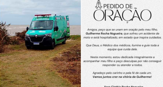 "Amigos, peço que se unam em oração pelo meu filho, Guilherme Rocha Nogueira, que sofreu um acidente de moto e está hospitalizado, em estado que inspira cuidados. Que Deus, o Médico dos médicos, ilumine e guie toda a equipe que cuida dele. Neste momento, estou dedicada integralmente a acompanhar meu filho e peço desculpas por não conseguir responder ou atender a todos. Agradeço pelo carinho e pela fé de cada um. Vamos juntos crer na vitória de Guilherme!", pediu Yara Cinthia nas redes sociais.