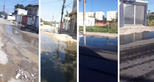 Jean Carlos é membro da comissão de moradores do bairro e mora na Rua Epitácio Pessoa. Ele compartilhou com a reportagem diversos registros em vídeo feitos ao longo do tempo. Um dos problemas mais frequentes é o vazamento de esgoto que ocorre há anos, desde antes da rua ter sido asfaltada. Uma gravação feita em junho deste ano destaca a situação.