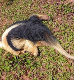Um tamanduá-bandeira foi encontrado morto em uma área de pastagem, nas proximidades da antiga usina de reciclagem do município, na manhã deste sábado. Moradores que passavam pelo local avistaram o animal caído no gramado e registraram imagens, que circularam nas redes sociais.