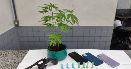 No local, além do cumprimento do mandado de prisão preventiva de um homem que ostentava armas de fogo nas redes sociais e possuía mandados de busca e apreensão em diversos endereços, outra pessoa foi presa e dois adolescentes ainda foram apreendidos após serem encontrados um revólver e drogas em posse deles. Foram apreendidos ainda 14 pinos de cocaína, um pedaço médio de maconha, um pé de maconha, o revólver de calibre 32 e três celulares.