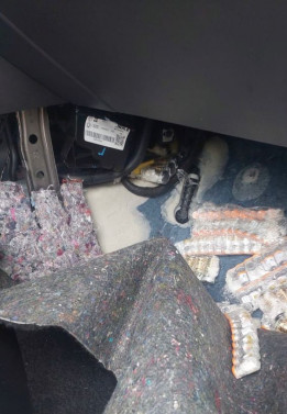 Foram encontrados em um compartimento oculto, dentro do painel, forro do teto e lataria do porta-malas os seguintes medicamentos: 349 ampolas de substância Tirzepatida; 400 comprimidos de Oxitoland 50mg; 80 comprimidos de Androlic 25mg; 50 frascos de Durateston;11 canetas de retatrutida; cinco Tirzec; 10 Lipoless; um once weekly; oito Peptido PT141; uma caixa de HGH FRAGMENC; 10 frascos de oxandrolando; seis ZPTROP32 e 360 comprimidos de oxandrolonade.