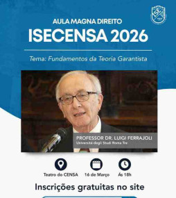 O Instituto Superior de Ensino do Censa (IseCensa) promove na próxima segunda-feira (16), das 18h às 21h30, no Teatro do Censa, o seminário “Garantismo no Direito Brasileiro”. O evento reunirá especialistas para discutir a aplicação da teoria garantista no sistema jurídico nacional e contará com a participação do jurista italiano Luigi Ferrajoli, referência mundial no tema.