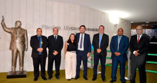 O prefeito Marcelo Batista e uma comitiva de Quissamã receberam o Selo do MEC na capital federal