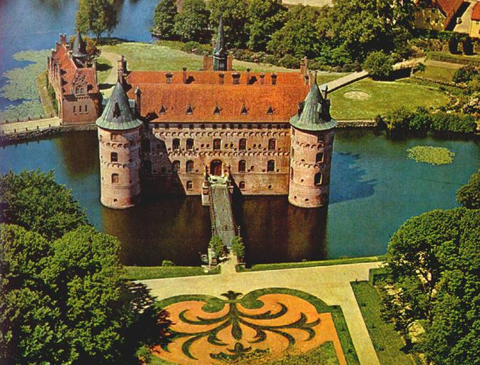 O Castelo Egeskov que em dinamarquês chama-se “ Egeskov Slot” fica no sul da ilha de Funen na Dinamarca, A Europa possui um grande número de castelos, O Egeskov esta entre os mais bem preservado. À construção do castelo foi realizada no final do século 14 e há 200 anos a mesma família mantem o castelo e atualmente uma família de condes residem no castelo. Possui um belo jardim com um labirinto verde e uma coleção de carros e motos antigos, nos sites abaixo podemos conhecer mais sobre o castelo.