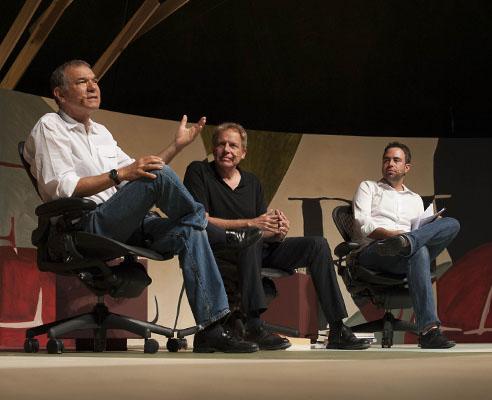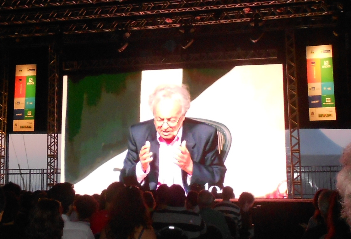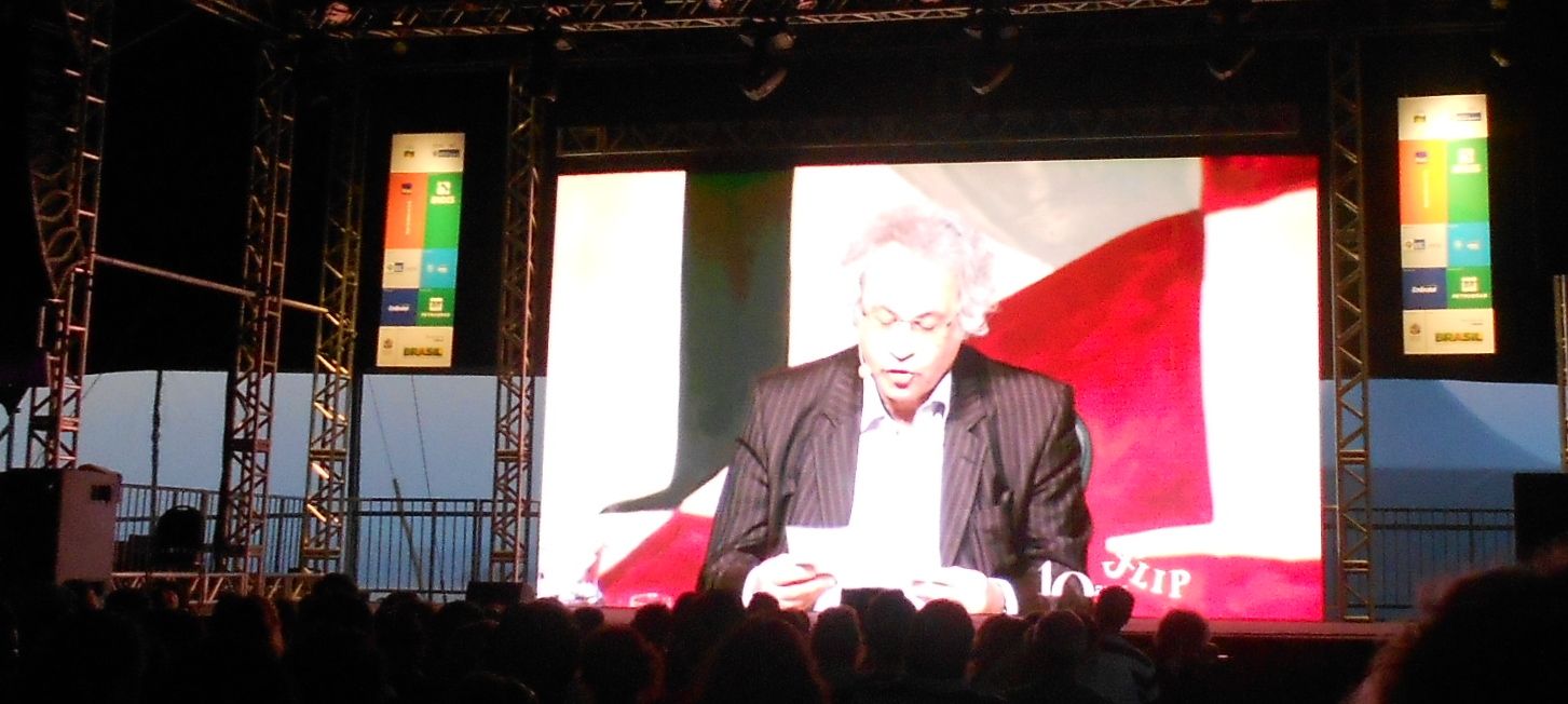 Já no domingo, últimas horas da Flip, naquela penúltima mesa de 2012 “Drummond: o poeta brasileiro” o também consagrado poeta Armando Freitas Filho, em vídeo – mas, como se ali estivesse, discorreu sobre sua relação pessoal e literária com Drummond. “Se uma máquina de escrever falasse, teria a voz de Drummond: seca e surda”, disse Armando. Rememorou o presente dado por seu pai ao fazer 15 anos – um disco, com Manuel Bandeira no lado A e Carlos Drummond de Andrade no lado B. Não por acaso era o lado B, esclarecendo que Drummond vai mais fundo, está adiante, do lado de lá: “Escrevia com o próprio fígado, pegava o ser humano por dentro, como se fosse uma cunha. Você pode até esquecer as palavras do verso, mas não esquece o sentimento que o verso trouxe”. Em 1960, Armando entregou o manuscrito de seu primeiro livro a Bandeira e foi por ele aconselhado a encaminhar seus poemas a Drummond. Daí surgiu uma rica relação pessoal, de mestre e pupilo – “ele não foi uma influência, foi uma possessão” – só terminada com a morte de Drummond. “Fui o primeiro a chegar ao velório e até corrigi um erro ortográfico que o funcionário cometera na placa que afixam à porta da sala onde está o morto – faltava um M no Drummond”, lembrou. “Hélio Pellegrino e eu entramos juntos na sala, abraçados, Hélio tremendo muito (ou era eu?), quando fomos abordados pelo jovem repórter Arthur Dapieve, perguntando qual era o significado daquela morte. Hélio respondeu: ‘Eu não me entenderia como pessoa sem a poesia dele’.” E assim caminhou a Flip, no que tange ao poeta da poesia Drummond. Ou como nas palavras do poeta, ensaísta e crítico literário Antonio Carlos Secchin, “O primeiro Drummond a gente nunca esquece”. Luciana Portinho Matéria publicada em 15/07, no caderno especial, Folha na Flip 2012.