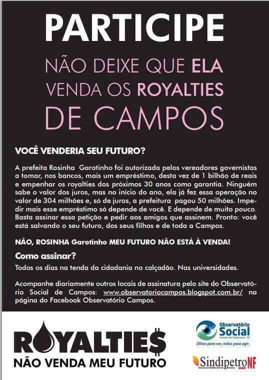 Ps. só não venham com o discurso opaco e catiço de imputar os males que se abatem no campista à queda internacional do valor do petróleo.
