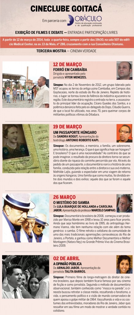 Vale conferir no Cineclube Goitacá, quarta-feira, dia 13 de novembro, às 19:30h. No edifício Medical Center, na av. 13 de Maio, nº 286, sala 507. Entrada franca.
