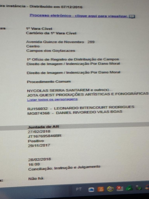O cantor Rogério Flausino, do grupo Jota Quest, esteve em Campos nesta quarta-feira (28) para uma audiência, no qual é réu, no Fórum Maria Tereza Gusmão. Ele chegou, acompanhado de um advogado, por volta de 15h30 e saiu cerca de duas horas depois. Na última passagem do grupo pela cidade, dia 14 de julho de 2016, na 57ª ExpoAgro, o cantor se envolveu em uma polêmica que acabou em processo judicial. A dupla sertaneja Nycolas e Fabyane, conhecida em Campos e região, está processando o grupo e Flausino após o cantor disparar xingamentos contra os dois durante o evento no Parque de Exposições da Pecuária.