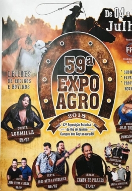 Começa nesta quarta-feira (4) a 59ª ExpoAgro de Campos. A tradicional festa acontece na Fundação Rural, no bairro da Pecuária, e segue até o próximo domingo (8). Além de shows, o público confere exposições e provas equestres.