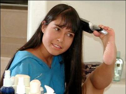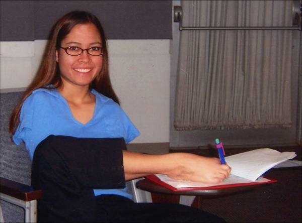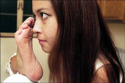 Jéssica nasceu sem braços, devido a uma rara enfermidade congênita.