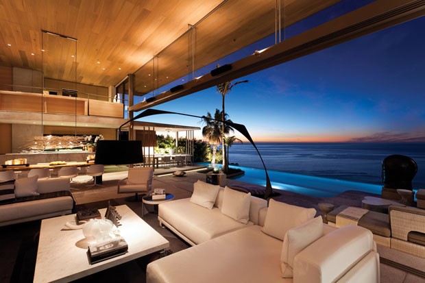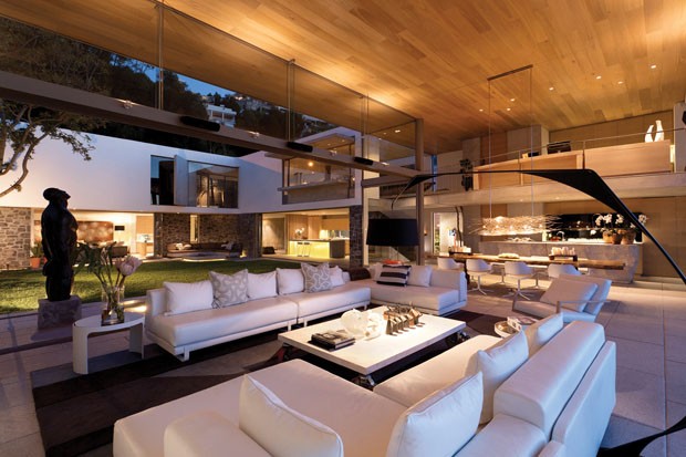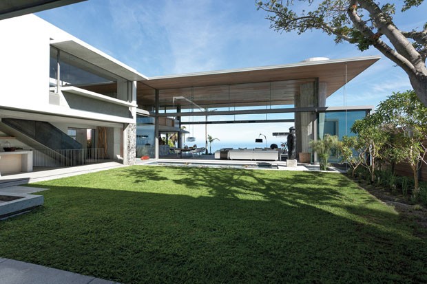 A Cidade do Cabo é o cenário desta residência. A oeste está a Camps Bay Beach, uma das praias mais badaladas da região e, a leste, algumas das montanhas mais famosas da cidade sul-africana. Por isso, arquitetos do estúdio Saota optaram por instalar ali uma casa que só se fecha para a rua, mas que abre-se totalmente para a natureza, através dos muitos planos de vidro. Ao redor das áreas comuns, o grande jardim intensifica ainda mais a sensação de amplidão que existe dentro da casa.