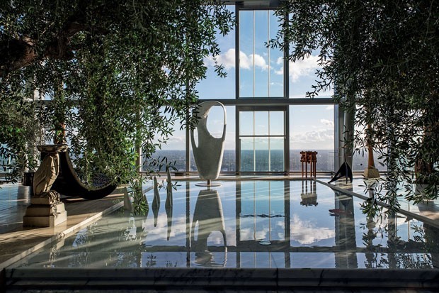 Uma propriedade de 1.200 m² com um jardim de oliveiras, carvalhos e limoeiros, no topo de um arranha-céu no coração de Manchester: esse é o lar do arquiteto Ian Simpson. O proprietário desse sonho foi também quem projetou o edifício, que se destaca no skyline da cidade graças a sua altura – é uma das torres mais altas da Europa. As paredes envidraçadas oferecem uma vista espetacular da cidade, em 360 graus – nos dias claros, pode-se enxergar a uma distância de 60 km.
