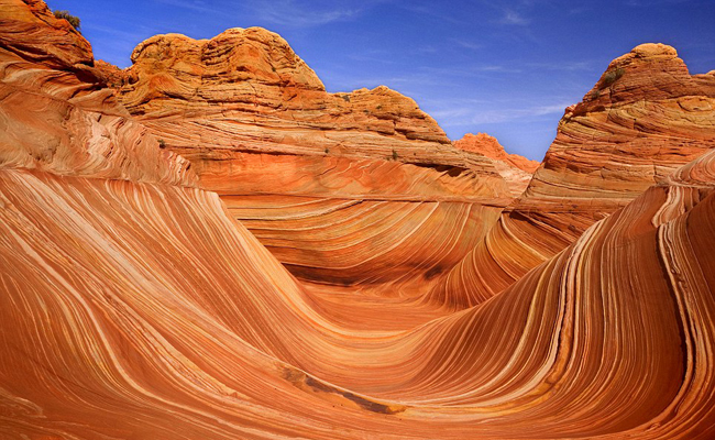 As incríveis paisagens se formaram com o passar de milhões de anos, devido a processos de erosão e glaciação ou foram transformadas pela erupção de vulcões. Algumas, no entanto, ainda são um mistério para os cientistas, como o lago cor-de-rosa na Austrália. A única certeza é que são formações geológicas. Aqui, a arquitetura impressionante foi criada sem o dedo do homem.1. A Onda, em Utah, nos Estados Unidos