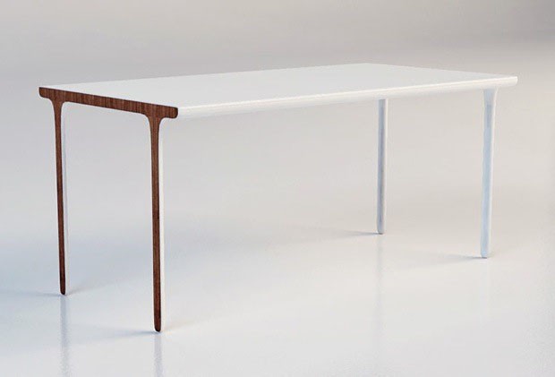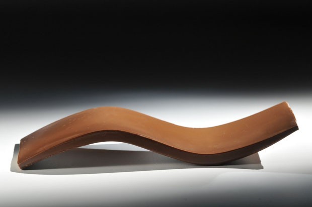 Mesa de chocolate branco, design de Artem Zigert Fanáticos por chocolate branco e design podem unir o útil ao paladar, levando para casa a mesa, que lembra camadas de chocolate branco por fora e chocolate ao leite por dentro. De espessura fina e com pés arredondados, a peça foi criada pelo designer Artem Zigert.