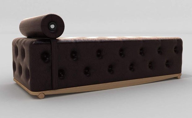 Chaise-longue Music Chocolate - design de Michi Jung O Music Chocolate é uma chaise-longue sem encosto que faz alusão a um divã de chocolate. Além do design irreverente, feito com base de madeira revestida com couro texturizado, a peça conta com um sistema de som integrado que permite plugar qualquer MP3 player.