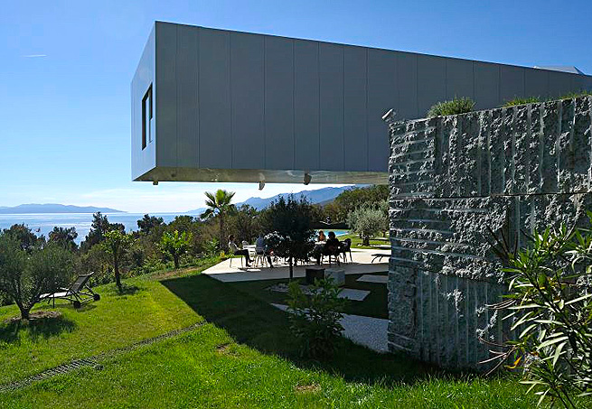 Croácia A casa assinada pelo arquiteto Idis Turato está localizada na Riviera Opatija, na Croácia. Sua estrutura, única, chama a atenção: o imóvel tem dois níveis, um deles suspenso sobre a área de lazer. O complexo projeto arquitetônico combina formas retas e equilíbrio, e passa a impressão de que o segundo andar foi rotacionado, ficando fora do eixo. Sob a sombra formada pela construção, uma grande mesa acomoda a família, que pode curtir a piscina ou apenas apreciar a vista.