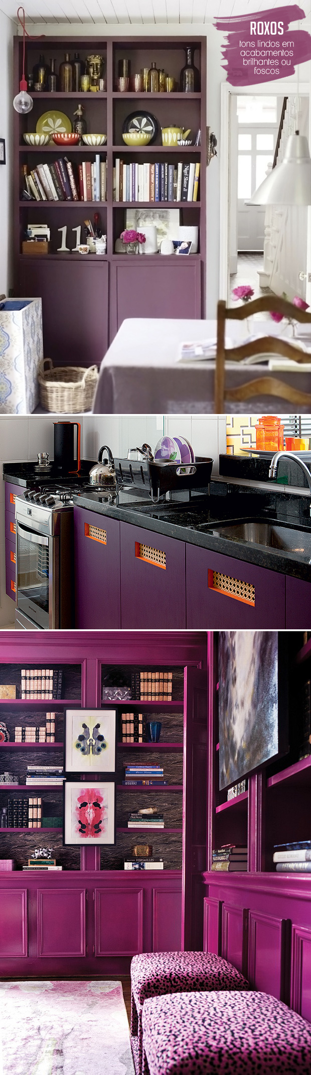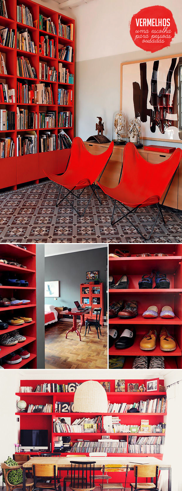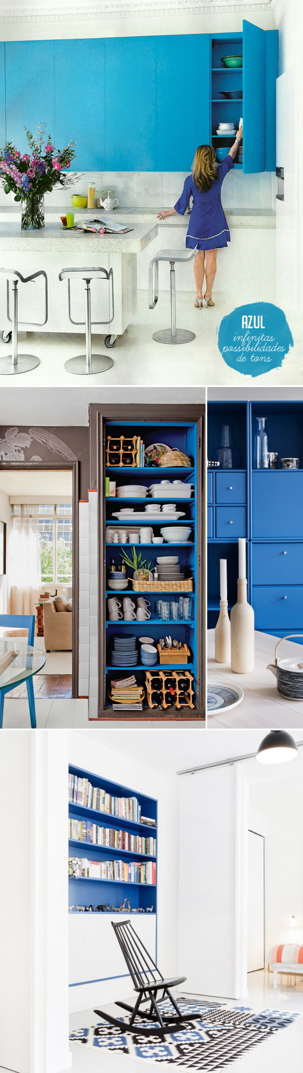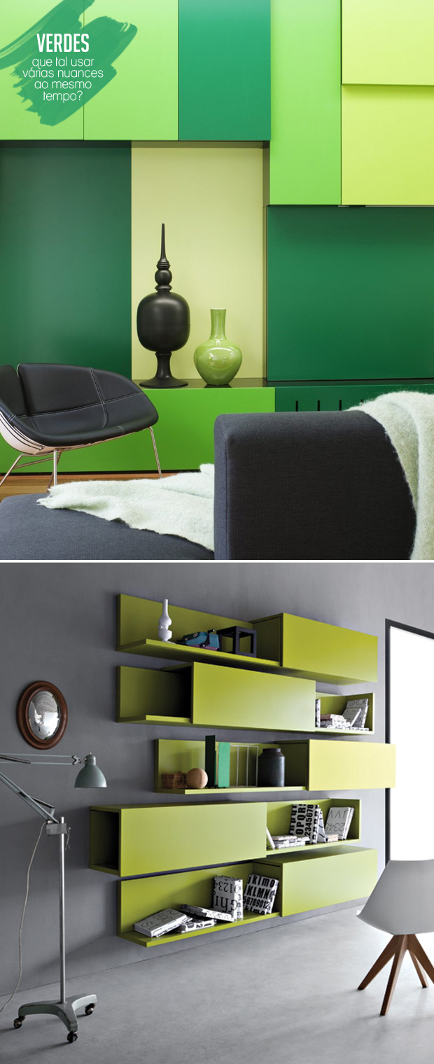 Ao invés de projetos mirabolantes de marcenaria, que tal investir em cores bem vibrantes para destacar os seus armários e estantes? Os acabamentos em laca colorida nunca estiveram tão em alta! Acho que valoriza o espaço, a peça em si e os objetos expostos também. E o bom é que hoje em dia já é possível reproduzir praticamente qualquer tonalidade que você quiser. ( E também não precisa necessariamente pintar de laca, pode ser com tinta normal para móveis mesmo, ou até tinta de parede!)