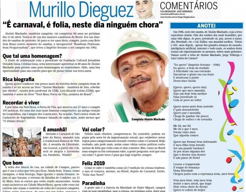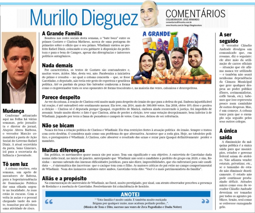 Nos deixou a poucos instantes o jornalista, escritor, de inteligência acima da média, Jorge Luiz Pereira dos Santos. Ex presidente da Fundação Zumbi dos Palmares, conduziu por anos o programa líder de audiência no rádio campista, "De Olho na Cidade"...